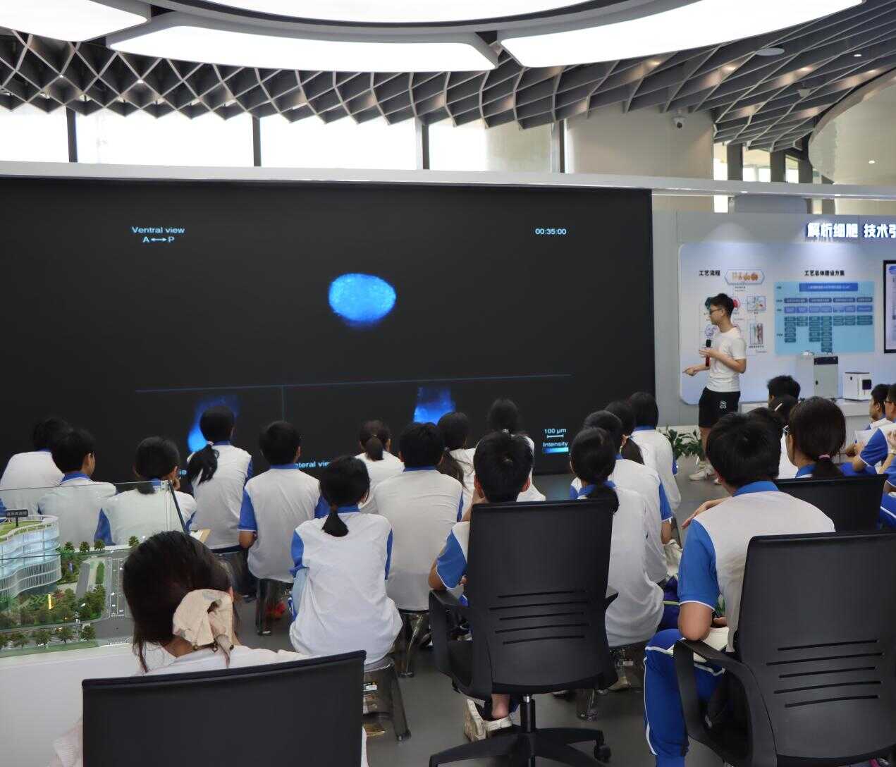 5月24日,由中國(guó)科學(xué)院廣州生物醫(yī)藥與健康研究院牽頭建設(shè)的國(guó)家“十四五”重大科技基礎(chǔ)設(shè)施——人類細(xì)胞譜系大科學(xué)研究設(shè)施(簡(jiǎn)稱“細(xì)胞譜系設(shè)施”)在廣州國(guó)際生物島舉辦了設(shè)施開(kāi)放日活動(dòng),活動(dòng)以“生命數(shù)字化大國(guó)重器‘大揭秘’”為主題,為來(lái)自廣州科學(xué)城中學(xué)的40余位學(xué)生和老師詳細(xì)介紹了這一剛剛正式啟動(dòng)建設(shè)的大科學(xué)設(shè)施。活動(dòng)集合參觀、前沿科學(xué)儀器演示、科普講座和問(wèn)答交流等多種形式。一方面具體且生動(dòng)展現(xiàn)了細(xì)胞譜系設(shè)施建設(shè)內(nèi)容、建設(shè)進(jìn)展以及預(yù)期目標(biāo),一方面深入淺出地講解了生命科學(xué)的前沿和核心細(xì)胞譜系研究的基本知識(shí)以及其在推動(dòng)疾病精準(zhǔn)治療、縮短藥物研發(fā)周期等方面的重要作用,拉近了公眾與大科學(xué)設(shè)施的距離,充分激發(fā)了學(xué)生們對(duì)生命科學(xué)的興趣和探索欲望。