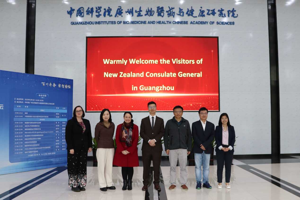 3月5日,新西蘭駐廣州總領事館總領事 Michael Zhang、副總領事 Erina Okeroa、政策顧問 Serena Zeng 一行到訪中國科學院廣州生物醫藥與健康研究院(以下簡稱 “廣州健康院”)。雙方就中新國際科技合作的當前進展及 2025 年合作規劃展開深入交流探討。