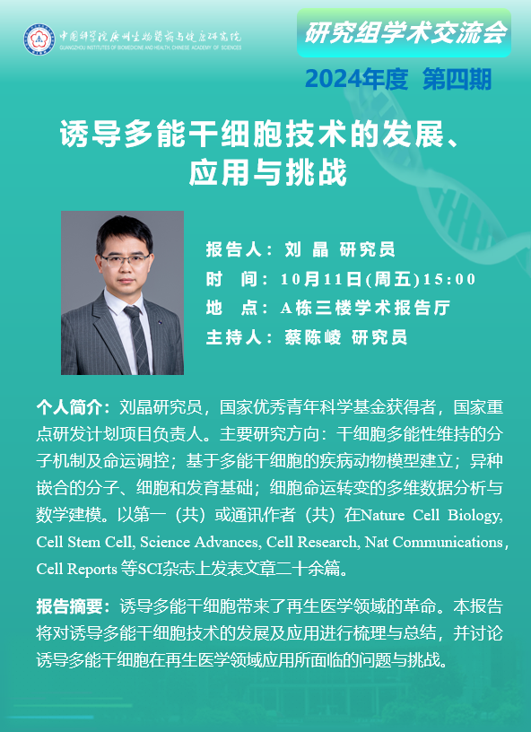 2024年10月11日研究組學術交流會(2024年第四期):誘導多能干細胞技術的發展、 應用與挑戰
