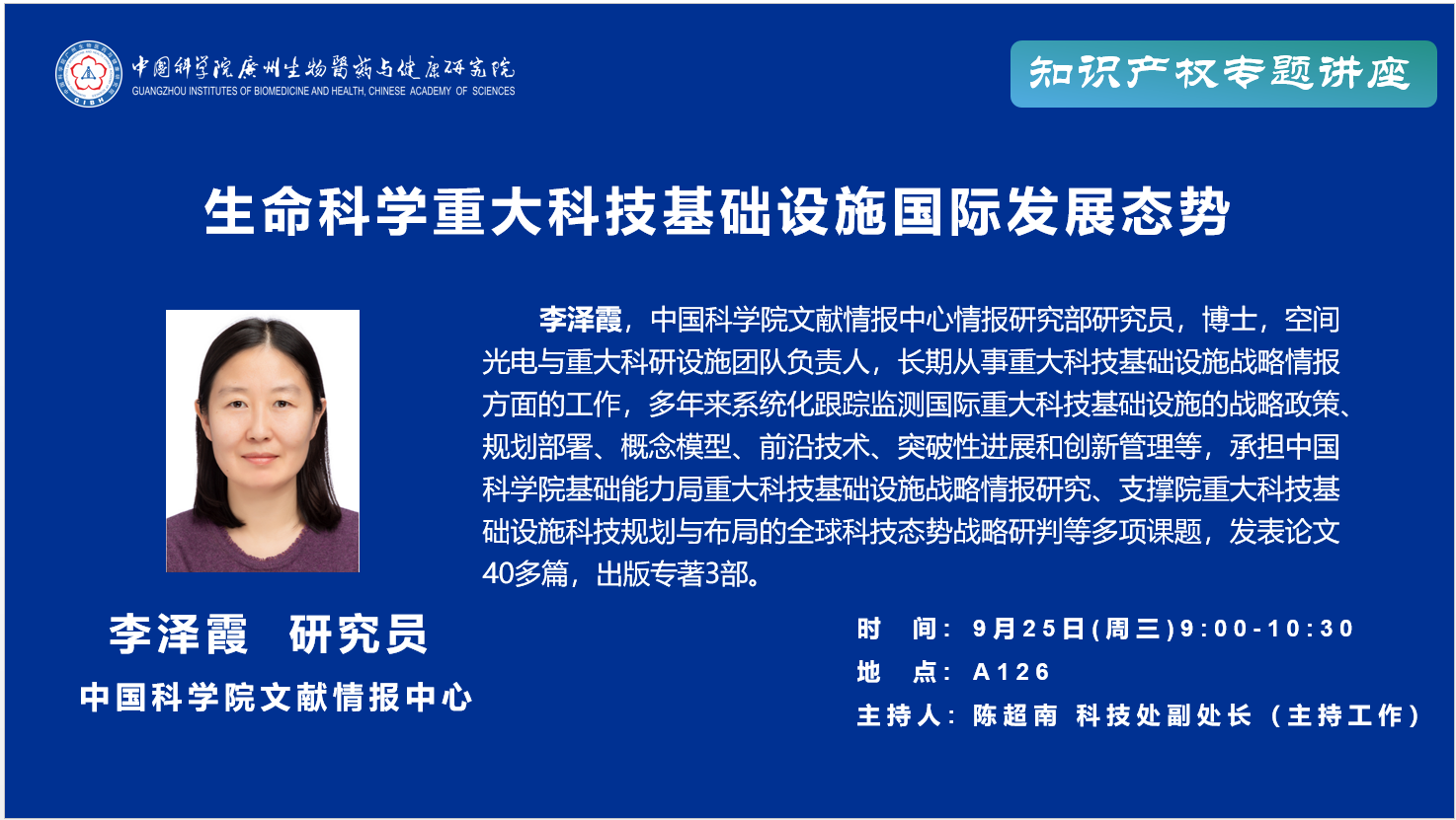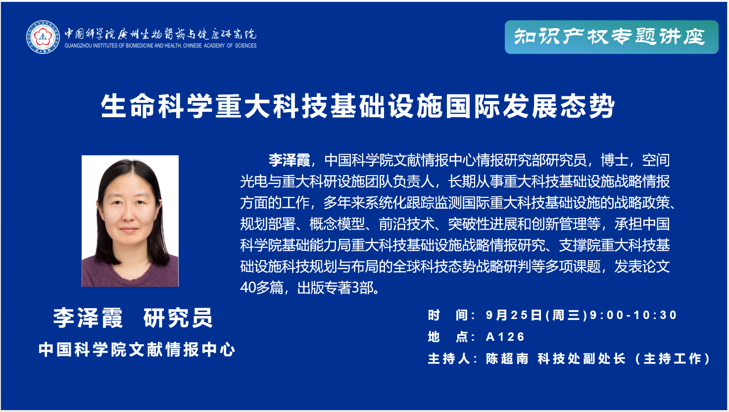 2024年9月25日知識產權專題講座:生命科學重大科技基礎設施國際發展態勢;重大科技基礎設施知識產權相關問題探討