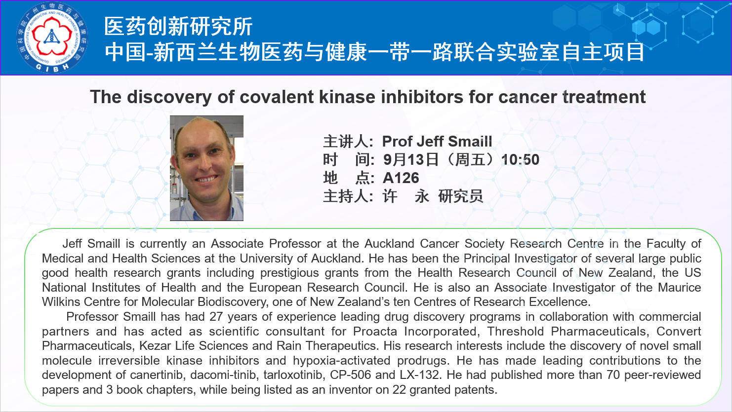 2024年9月13日學術講座:The discovery of covalent kinase inhibitors for cancer treatment