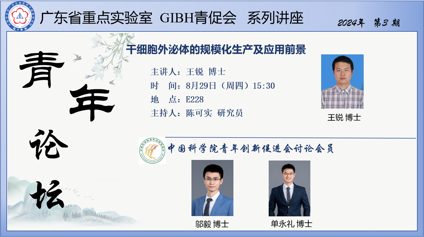 2024年8月29日廣東省重點(diǎn)實(shí)驗(yàn)室GIBH青促會(huì)系列講座(2024年第3期):干細(xì)胞外泌體的規(guī)模化生產(chǎn)及應(yīng)用前景