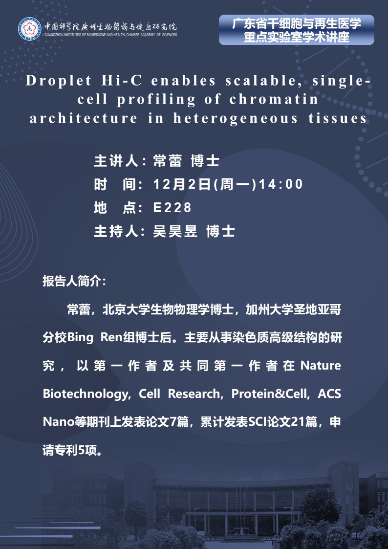 2024年12月2日廣東省干細(xì)胞與再生醫(yī)學(xué)重點(diǎn)實(shí)驗(yàn)室學(xué)術(shù)講座:Droplet Hi-C enables scalable, single-cell profiling of chromatin architecture in heterogeneous tissues
