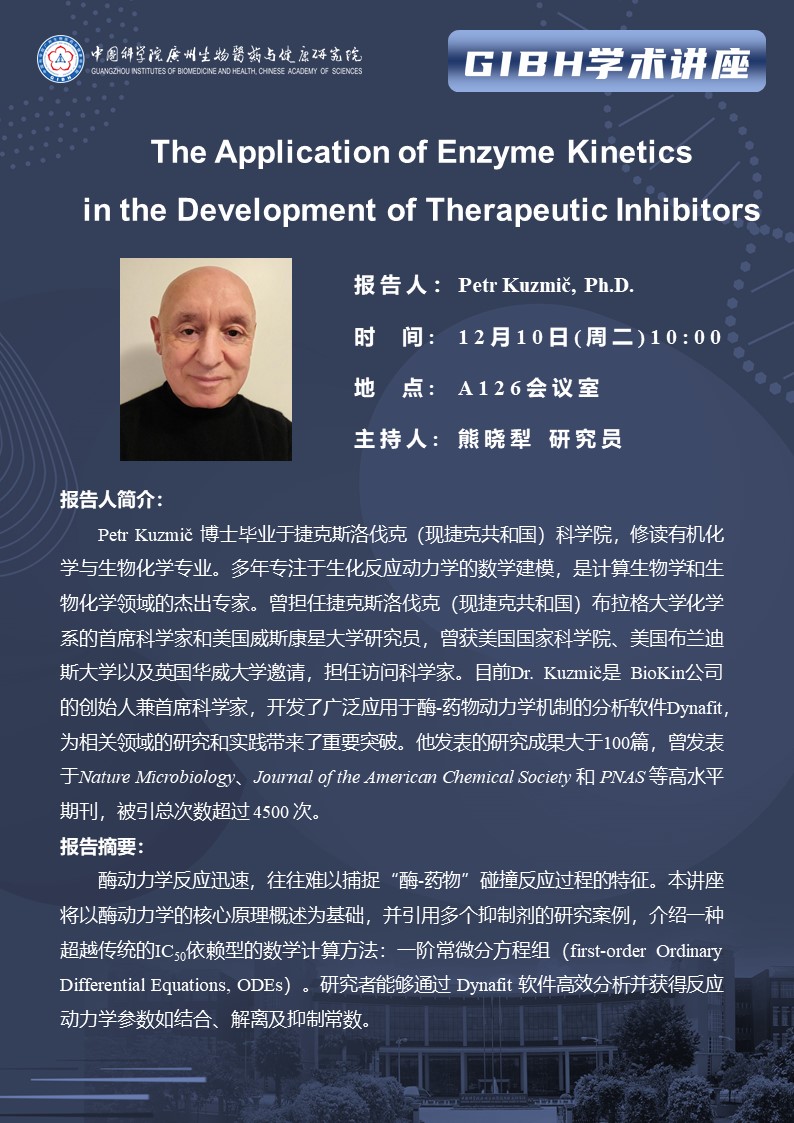 2024年12月10日學術講座:The Application of Enzyme Kinetics in the Development of Therapeutic Inhibitors