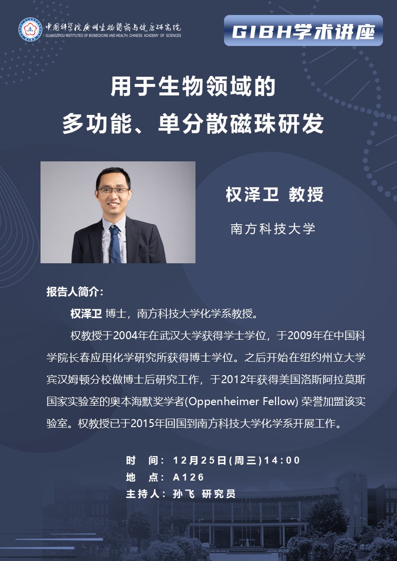 2024年12月25日學(xué)術(shù)講座:用于生物領(lǐng)域的多功能、單分散磁珠研發(fā)