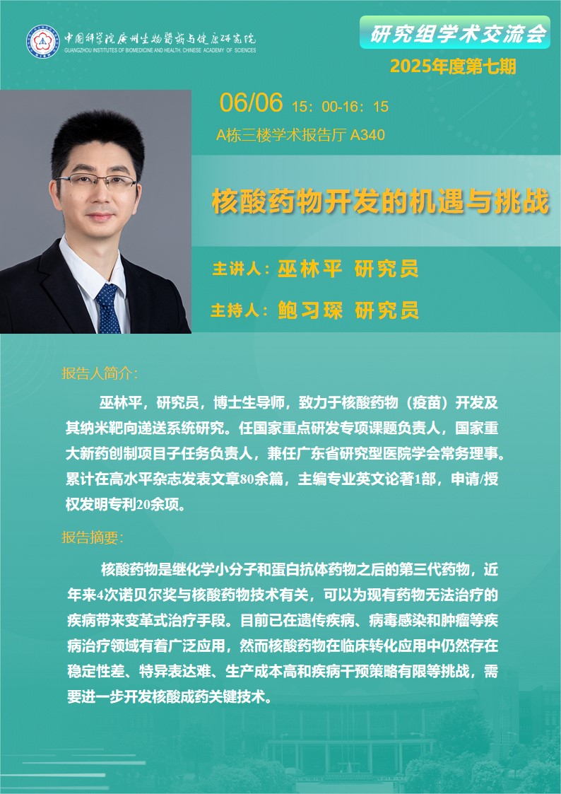 2025年6月6日研究組學術交流會(2025年度第七期):核酸藥物開發的機遇與挑戰