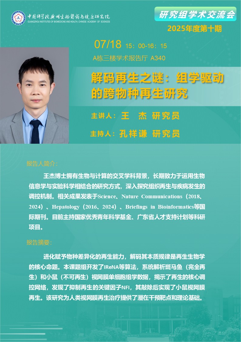 2025年7月18日研究組學術交流會(2025年度第十期):解碼再生之謎:組學驅動的跨物種再生研究
