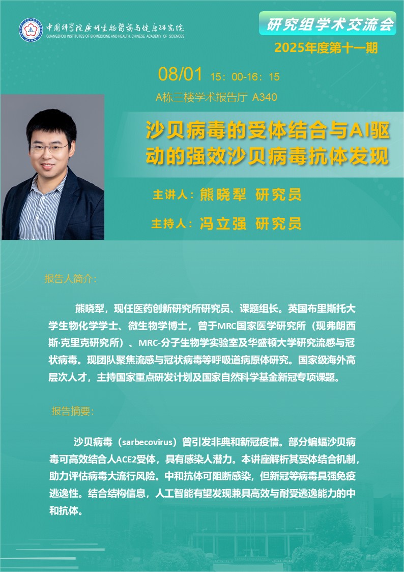 2025年8月1日研究組學術交流會(2025年度第十一期): 沙貝病毒的受體結合與AI驅動的強效沙貝病毒抗體發現