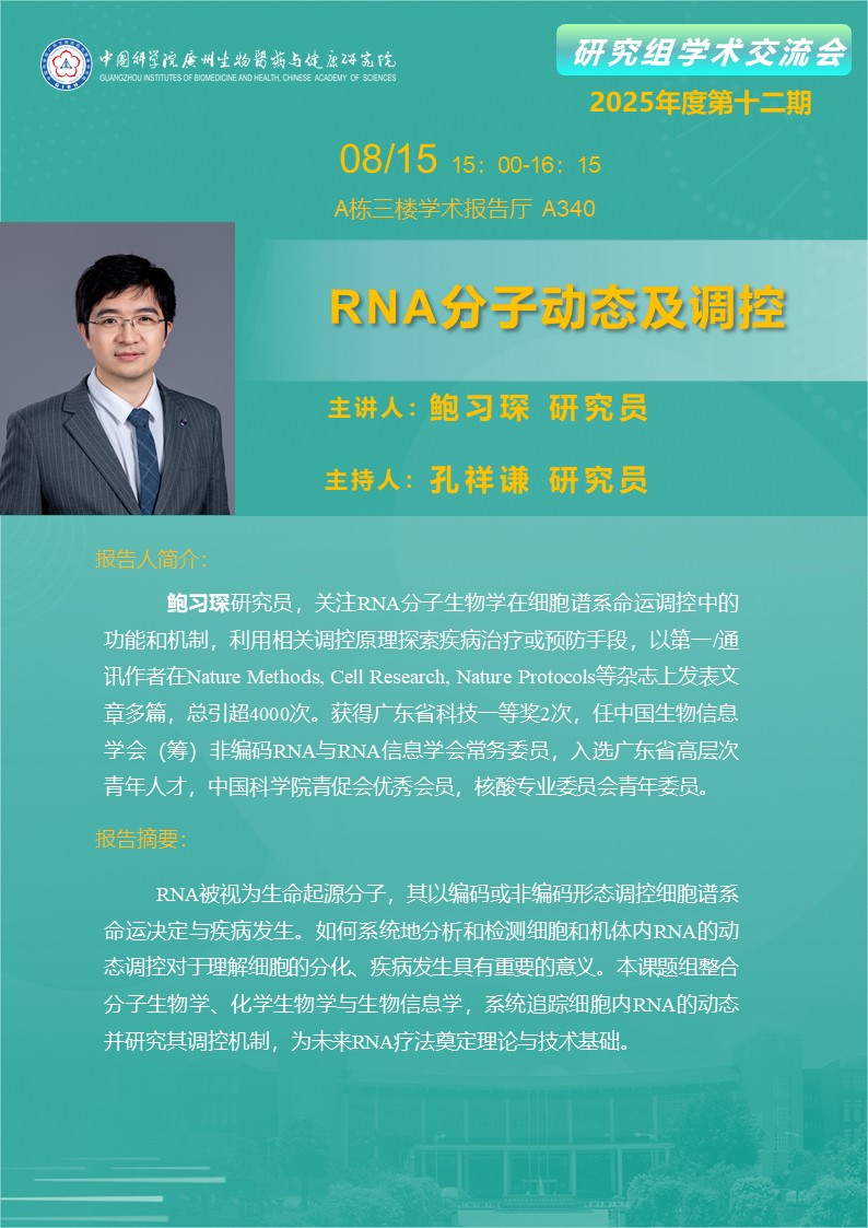 2025年8月15日研究組學術交流會(2025年度第十二期):RNA分子動態及調控
