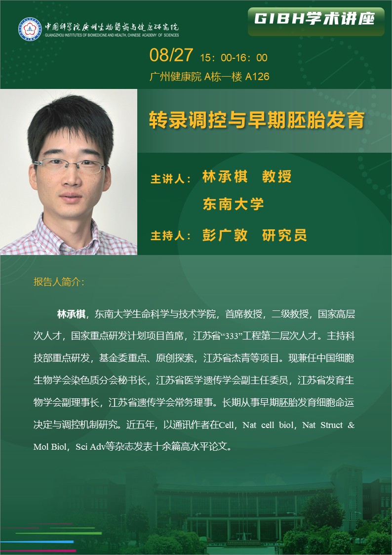 2025年8月27日學(xué)術(shù)講座: 轉(zhuǎn)錄調(diào)控與早期胚胎發(fā)育