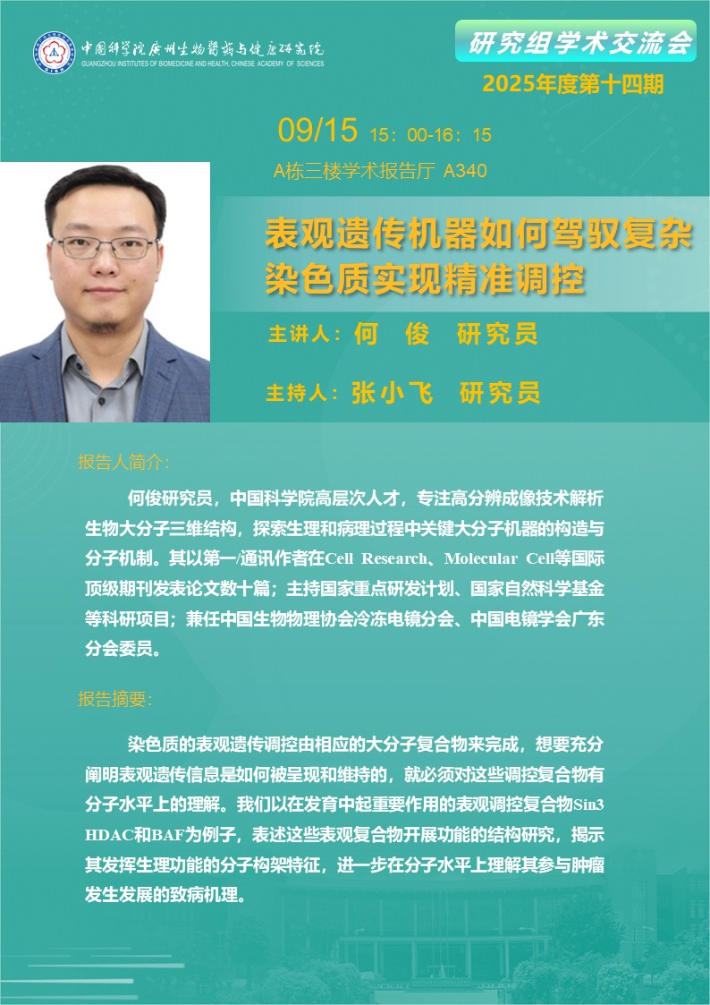 2025年9月15日研究組學術交流會(2025年度第十四期):表觀遺傳機器如何駕馭復雜染色質實現精準調控